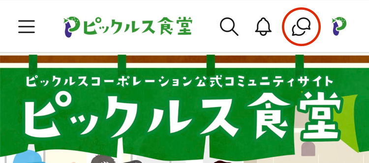 コミュニティサイト内、ヘッダーのメッセージアイコン(下記参照↓)