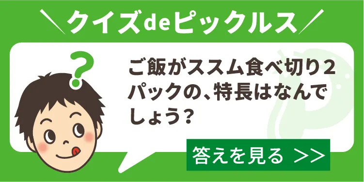 【クイズ】ご飯がススム食べきり2パックの特徴はなんでしょう?