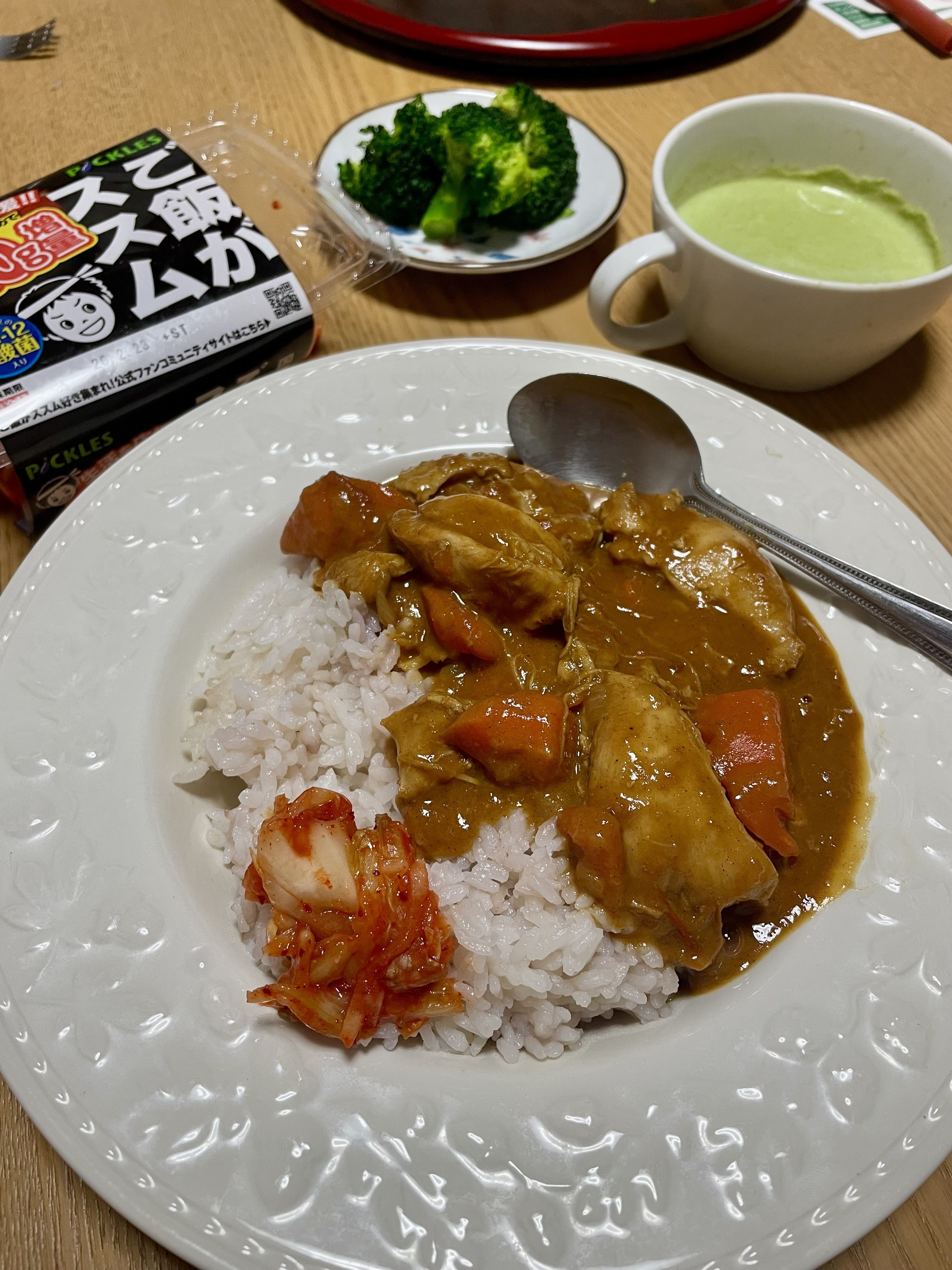 トップ > 献立表【写真投稿】 > 今日のピックルス > カレーにキムチ 優子 2026/02/09 19:59 カレーにキムチ 今日はカレーでした🍛 もも肉と野菜を、トマト缶とお酒と野菜の水分だけでコトコト煮て、仕上げに牛乳を入れたまろやかカレーです。 息子が「ママカレー」と言ってたくさん食べてくれます🥰 大人はご飯がススムキムチを添えました。 カレーには福神漬けも良いですが、キムチも良いですね✨ ご飯がススムキムチの何にでも合う万能さが大好きです。 ご飯がススムキムチ ススムくんおめでとう2026 いいね 共有する 共有する X facebook LINE リンクをコピー ご飯がススムキムチ 甘っ辛っうまっ‼なキムチ かつお節などの魚介のうま味が、具沢山ヤンニョムによってご飯とよく絡み、 ついついおかわりしたくなるこってりとした味わい。一般的なキムチに比べ辛さが控えめなので、辛いものが苦手なお子様にもおいしく召しあがっていただけます。そのままはもちろんのこと、料理に使ってもおいしいと評判のキムチです。当社独自の植物性乳酸菌Pne-12(ピーネ12)を配合しています。 詳細を見る コメントする 2 件の返信 (新着順) ミュートしたユーザーの投稿です。 投稿を表示 食堂長るみ@ピックルス食堂スタッフ 2026/02/12 11:30 優子 優子さん 投稿ありがとうございます! 作り方からして、、絶対おいしいやつですね😋 お子さんとも一緒に食べられるメニューにアレンジして、楽しんでいただけてうれしいです✨ いいね 返信する ミュートしたユーザーの投稿です。 投稿を表示 優子 2026/02/13 21:01 食堂長るみ@ピックルス食堂スタッフ ありがとうございます♪ 我が家の定番カレーです🍛 いいね 返信する ミュートしたユーザーの投稿です。 投稿を表示 いずみ 2026/02/10 12:41 カレーも奥にあるスープも美味しそうです🤤 ご飯がススムだからこそ、カレーに合うっていうのもありますよね😉 いいね 返信する ミュートしたユーザーの投稿です。 投稿を表示 優子 2026/02/10 19:02 いずみ ありがとうございます😊 ちょっと甘めなので福神漬けみたいな役割をしてくれました✨ いいね 返信する