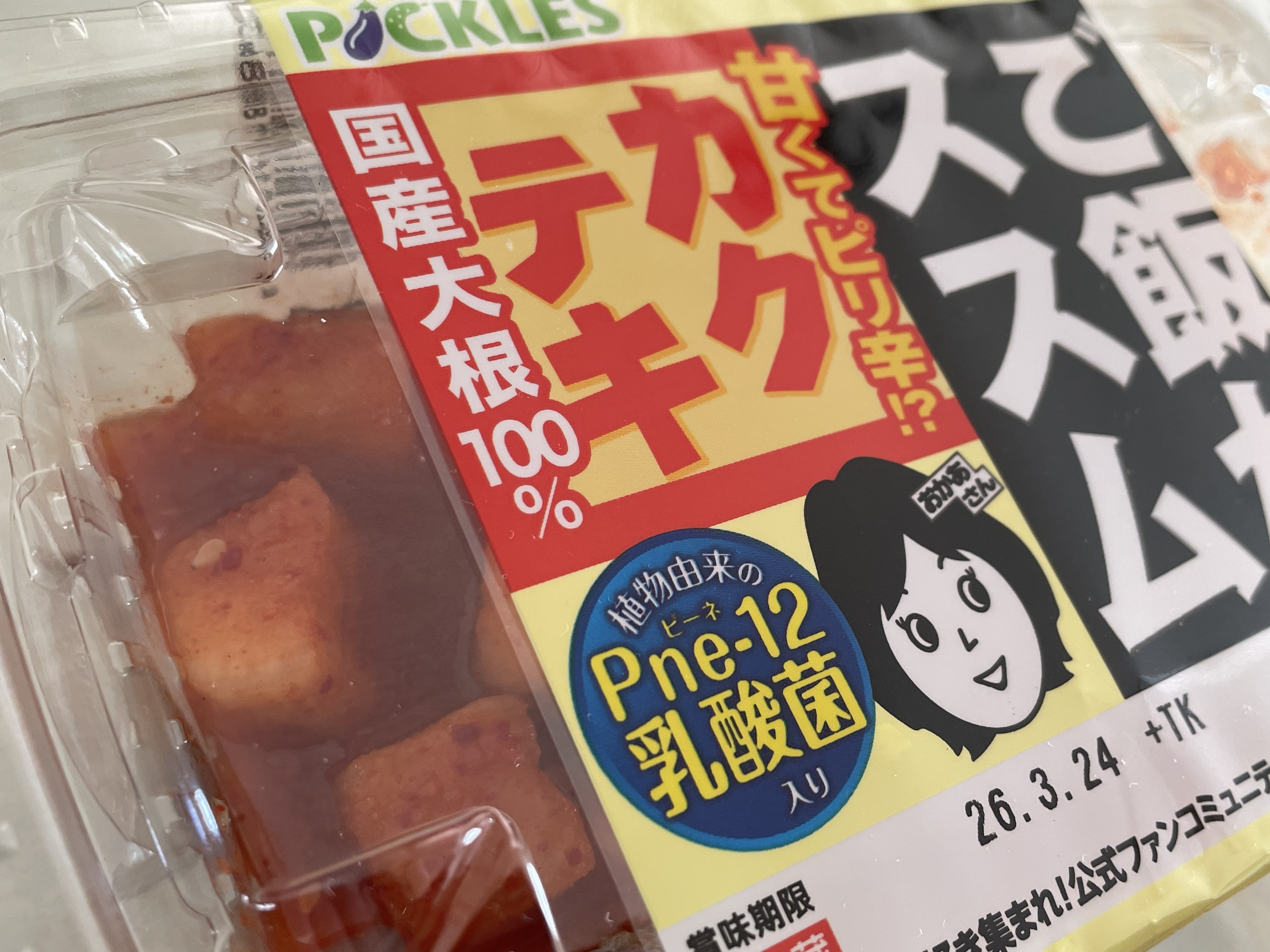 トップ > 献立表【写真投稿】 > 今日のピックルス > カクテキ 松葉 2026/03/08 16:07 カクテキ 毎週末買い出しに行く近所のスーパーで取り扱ってくれていてありがたい😋 ご飯がススムおつまみキムチ大根 カクテキ風 いいね 共有する 共有する X facebook LINE リンクをコピー ご飯がススムおつまみキムチ大根 カクテキ風 【『ピックルスコーポレーション』と『壮関』のコラボ商品】大根を甘辛のカクテキ風キムチ大根に仕上げました!便利で食べやすい個包装です。 詳細を見る コメントする 2 件の返信 (新着順) ミュートしたユーザーの投稿です。 投稿を表示 食堂長るみ@ピックルス食堂スタッフ 2026/03/11 15:18 松葉 松葉さん 投稿ありがとうございます! お買い物のレギュラーメンバーに入れていただきうれしいです🥹✨ よく行くお店の取り扱いがもっと増えますように🙏笑 いいね 返信する ミュートしたユーザーの投稿です。 投稿を表示 いずみ 2026/03/10 22:02 ポリポリの食感、たまらないですよね🤤✨ いいね 返信する ミュートしたユーザーの投稿です。 投稿を表示 松葉 2026/03/11 23:58 いずみ 美味しいですね〜 私、どうやら1週間に2〜3パックのペースで食べてしまいそうで、注意しないといけません😅 いいね 返信する ミュートしたユーザーの投稿です。 投稿を表示 松葉 2026/03/11 23:59 松前があれば、ぜひ買います! (難しいでしょうが…🤔) いいね 返信する