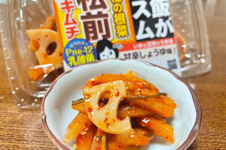 4種の根菜を使用し、昆布とするめのうま味をきかせた松前漬風のキムチです(4種の根菜には大根・ごぼう・蓮根・人参を使用)。