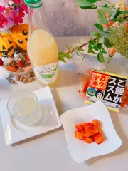 今度は、炭酸水で割ってみた 💛ピックルスアカウント人気ペアリングに挑戦!「ご飯がススム カクテキ」×「文旦 Kaju」💛今度のペアリングは、炭酸水で割った「文旦Kaju」と。 スッキリとした飲み心地に甘辛いカクテキが最高です。お供に、ラーメン風スープの素麺を用意しました