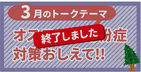 今月のトークテーマ(3月)「オススメの花粉症対策おしえて🌲」